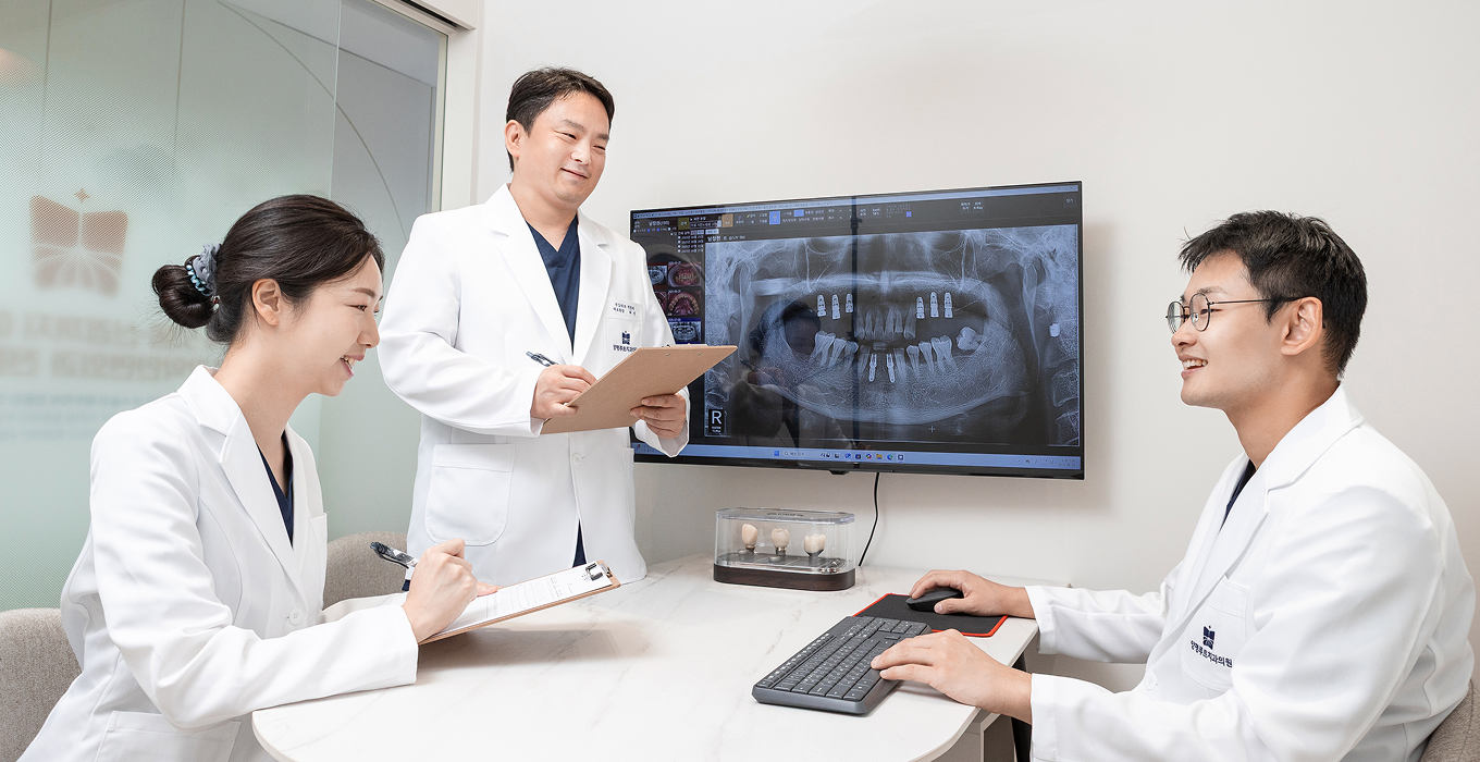 대표원장을 포함한 각 분야의 치과 전문의들이 협진을 통해 환자 한 분 한 분에게 가장 적합한 치료 계획을 수립하고, 최상의 결과를 약속드립니다.